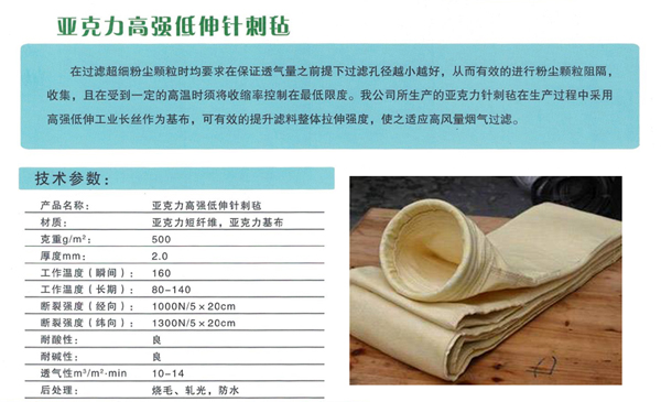 亞克力中溫除塵器布袋的【產(chǎn)品特性】: