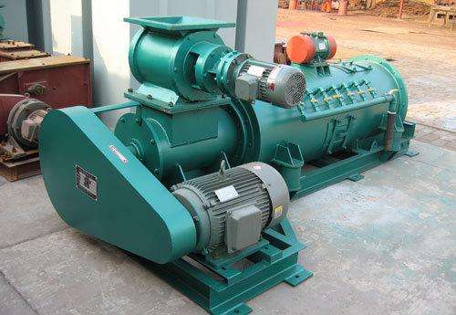 單軸粉塵加濕機由立式箱體、進料口下的擋灰板、鼠籠式攪拌機構和箱體內的噴水嘴組成。擋灰板與鼠籠式攪拌機構的配合形成粉塵在箱體的上下翻滾攪動,從而使均勻混合后的加濕粉塵從落料出口處排出。本機具有結構簡單,處理量大,混合質量高,節(jié)省用水量大等優(yōu)點。