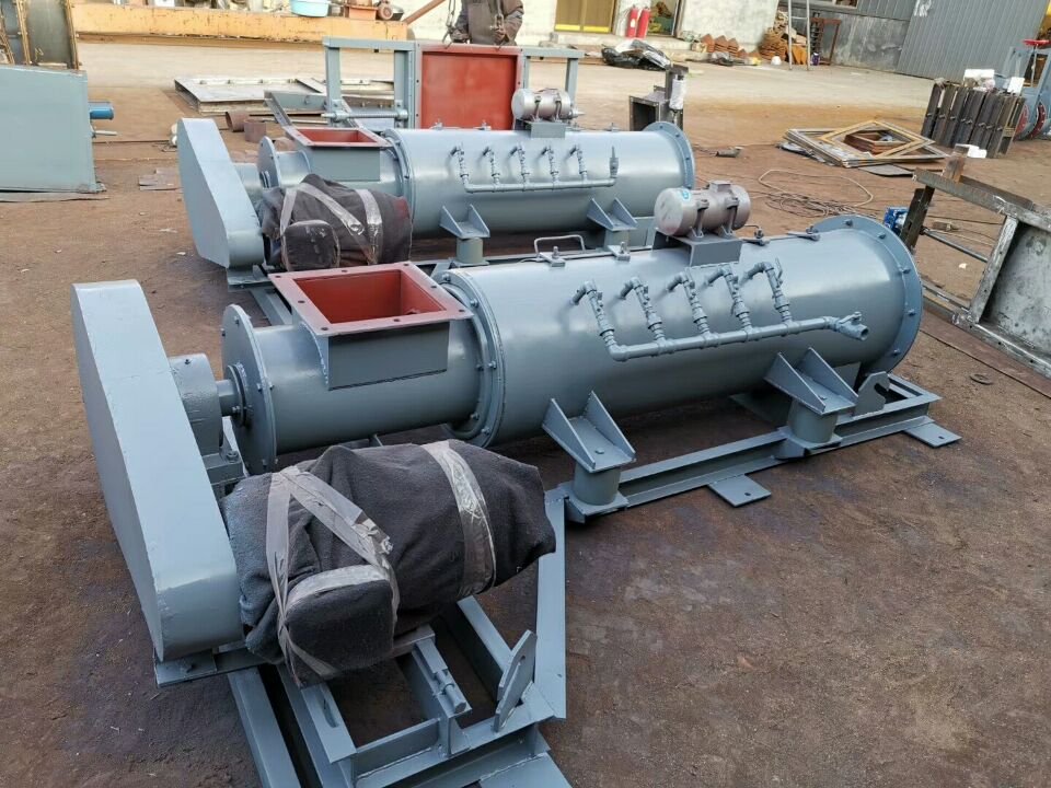 單軸粉塵加濕攪拌機(jī)由均勻供料,葉片輸料,混合擊打加濕,振動(dòng)系統(tǒng)四部分組成,且配電控和供水系統(tǒng),該機(jī)整體固定在一支架上,筒體由四組彈性元件支撐,通過(guò)激振裝置,施以振動(dòng),使整機(jī)在運(yùn)傳過(guò)程中,筒體作高頻振動(dòng),筒壁與攪拌軸之間始終保持間隙,使整機(jī)運(yùn)轉(zhuǎn)阻力大幅度減小,杜絕了悶機(jī)、堵轉(zhuǎn)現(xiàn)象,減少停機(jī)清理時(shí)間,提高工作效率。